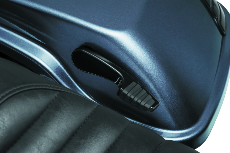 A sleek direct replacement for the factory saddlebag lid handle offering improved ergonomics and easy operation with integrated rubber pad for sure-fingered grip.